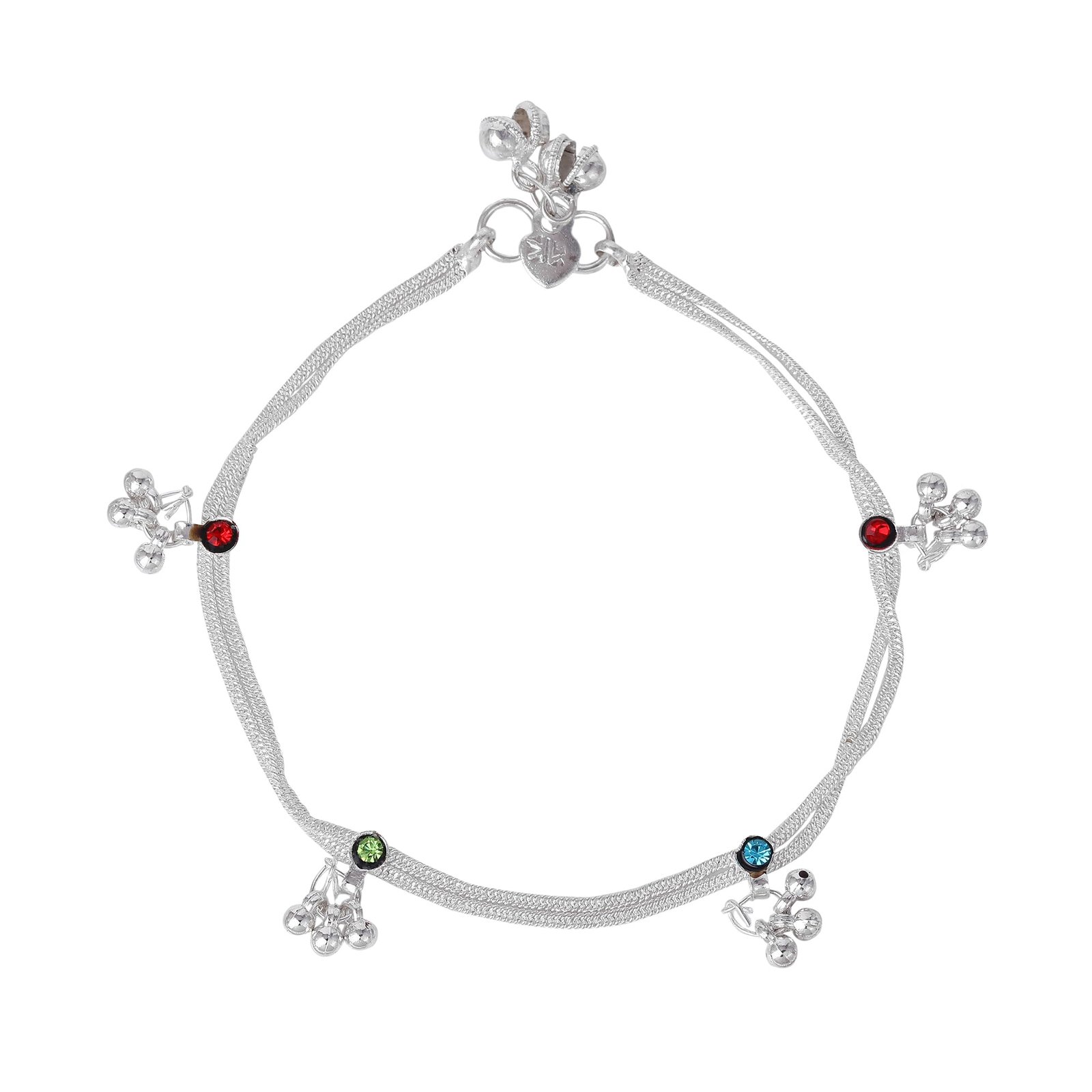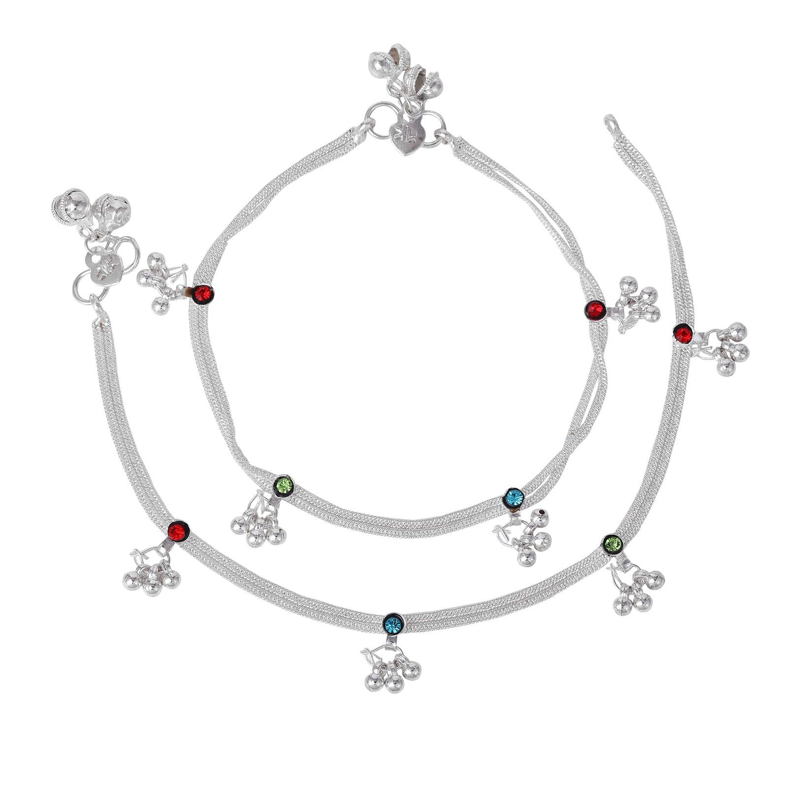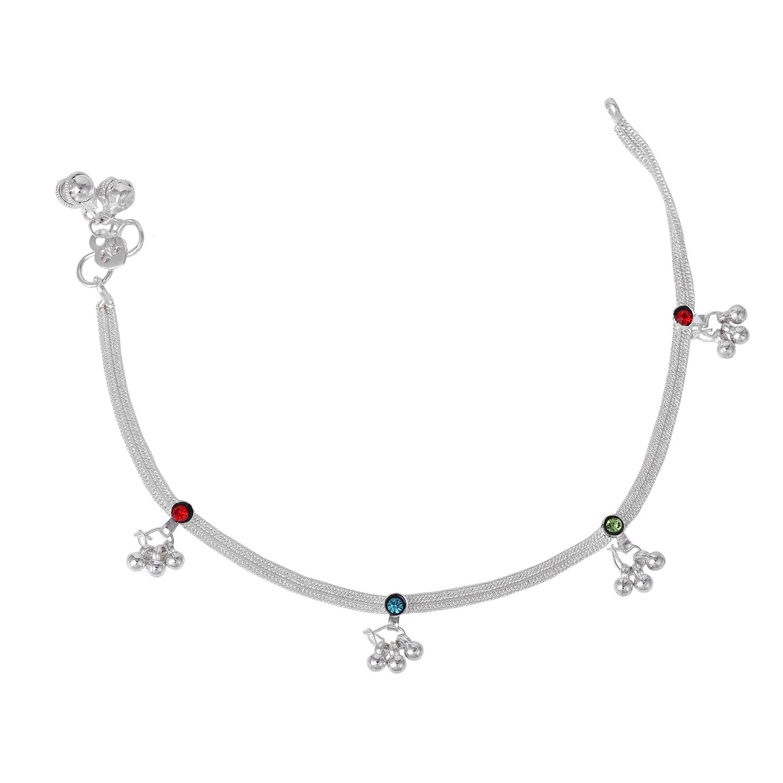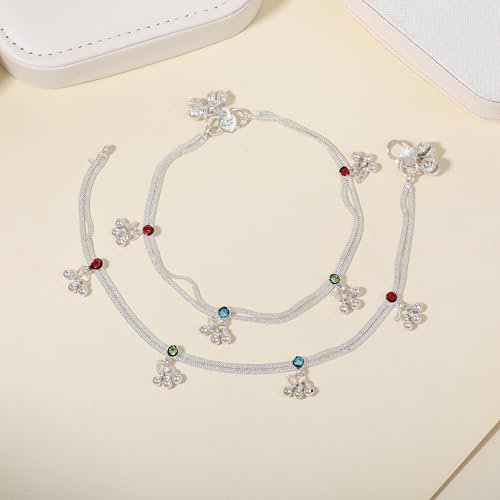 - → Fashion Jewelry; Jewelry; Anklets; Chain Anklets; Chains for Legs; Latest Anklets; Designer Anklets; Anklets for Girls; Anklets for Women → Material: Alloy; Plating: Rhodium; Occasion: Casual & Festive Wear; Closure Type: S-Hook → Stone Type: Crystals; Stone Color: Multi-Color → Pack Contains: 1 Pair of Anklets → Dimensions: Length: 26 cm; Width: 1.5 cm; Height: 0.5 cm →Item Weight: 16.36 Gms