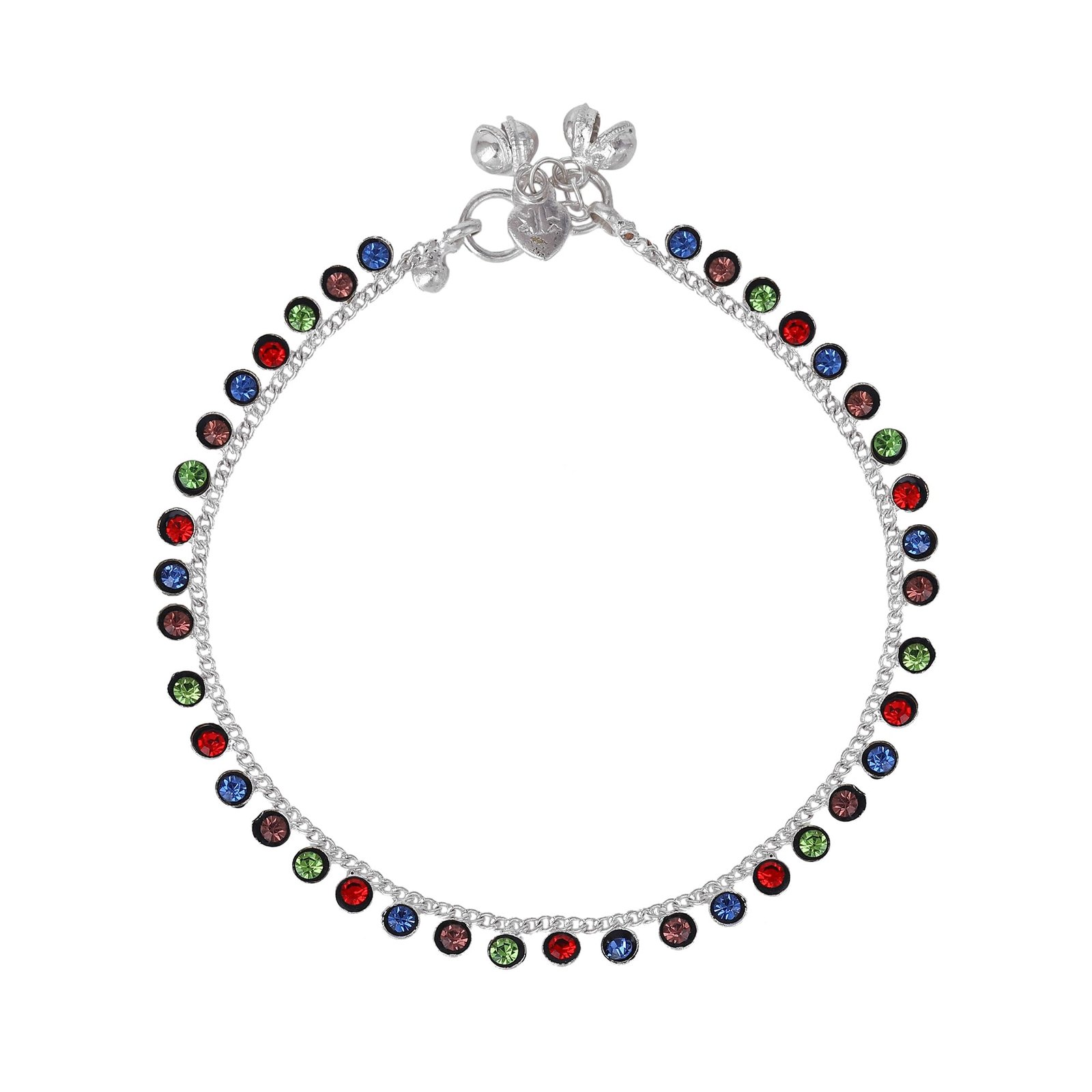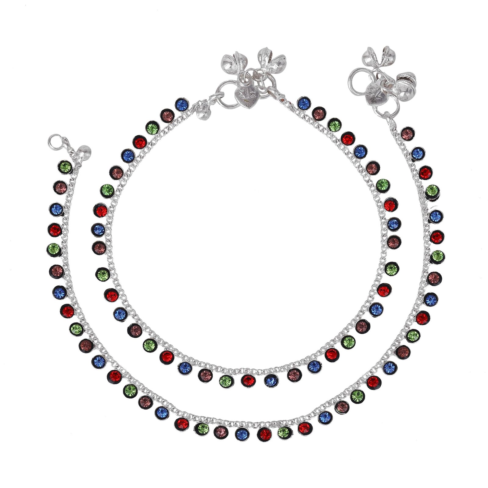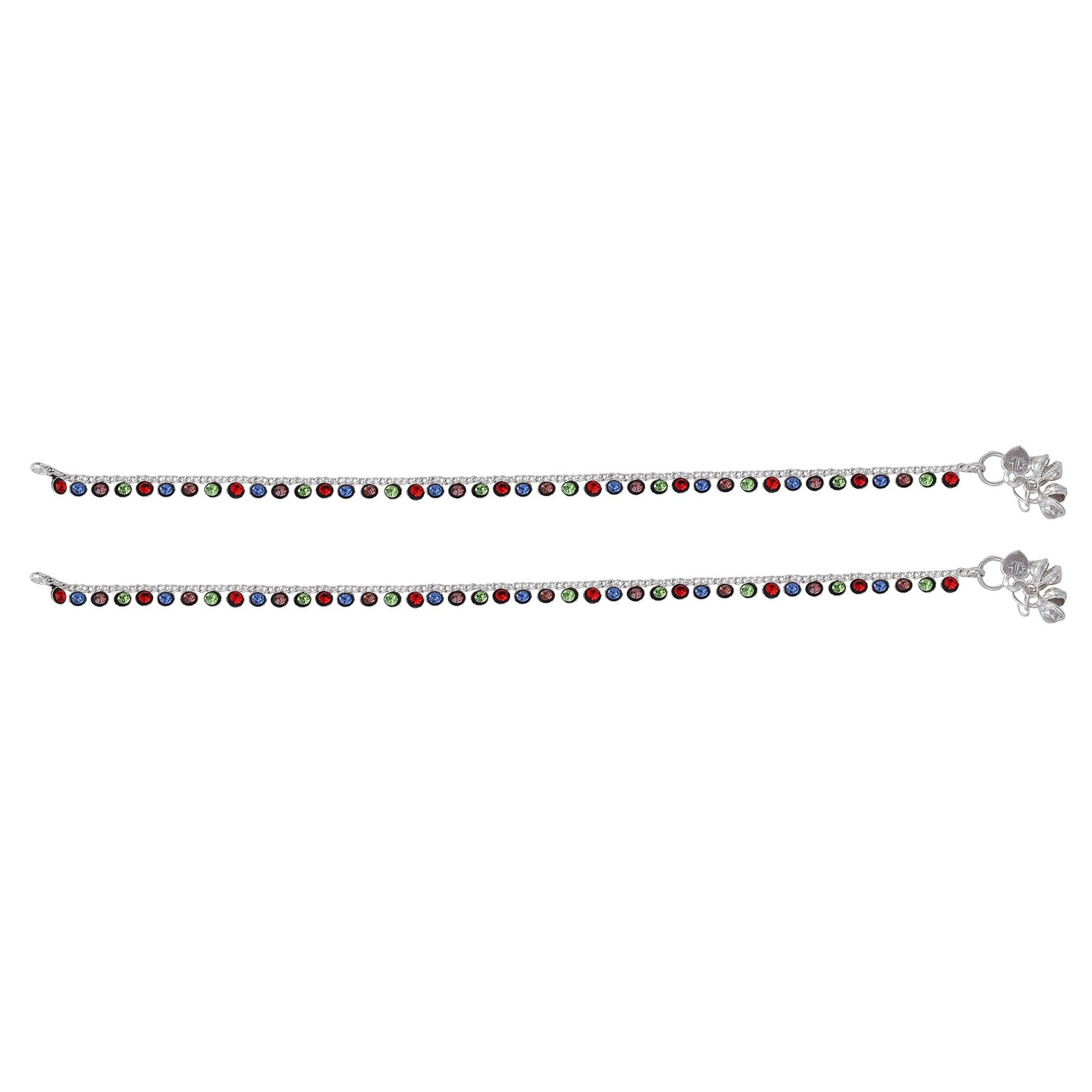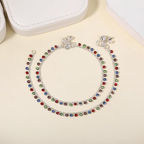 - → Fashion Jewelry; Jewelry; Anklets; Chain Anklets; Chains for Legs; Latest Anklets; Designer Anklets; Anklets for Girls; Anklets for Women → Material: Alloy; Plating: Rhodium; Occasion: Casual & Festive Wear; Closure Type: S-Hook → Stone Type: Crystals; Stone Color: Multi-Color → Pack Contains: 1 Pair of Anklets → Dimensions: Length: 25.5 cm; Width: 0.6 cm; Height: 0.3 cm →Item Weight: 17.8 Gms
