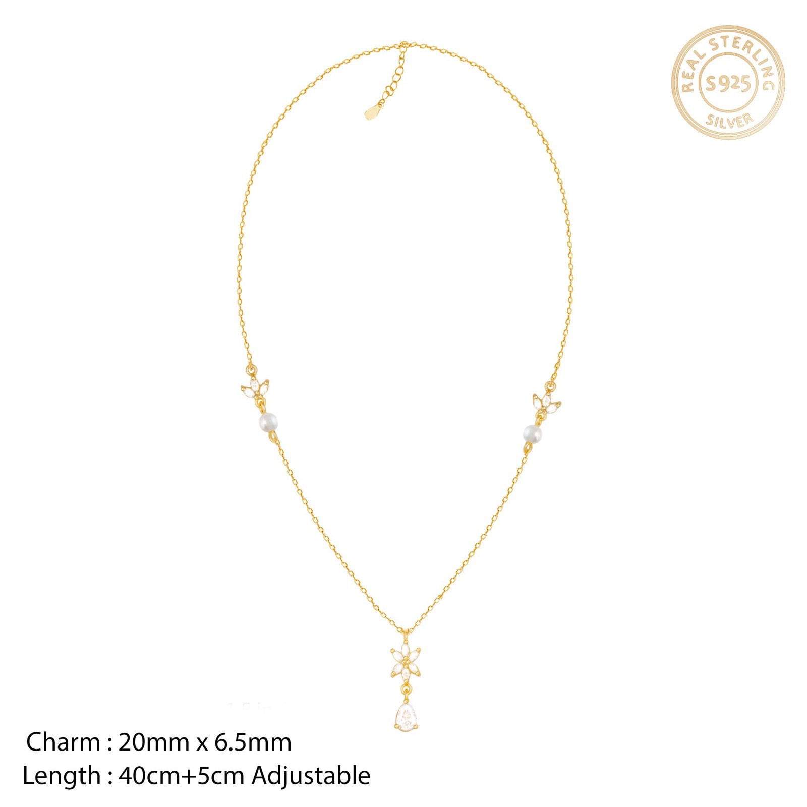 • PRODUCT DETAILS : Made of 925 Silver with Gold plating, Includes 16″ + 2″ adjustable Gold Chain, AAA+ Quality Zircons. Charm: 20 mm x 6.5 mm. Rhodium finish to prevent tarnish