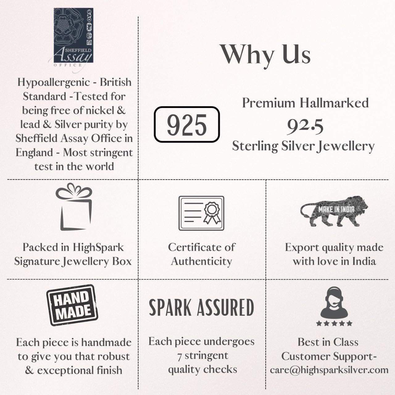 • ๐Ÿ’Ž ABOUT HIGHSPARK — HighSpark brings to you modern and contemporary 925 Silver Jewelry. All our Jewelry is 925 Engraved. Authenticity Card is provided for Purity of Silver for Gifting.