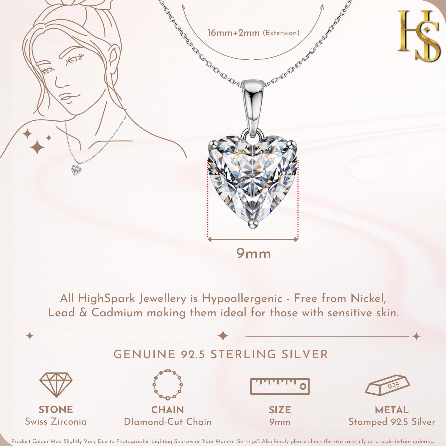 HighSpark 925 Silver Solitaire Heart Pendant with Chain For Women | 92.5 Sterling Silver & Diamond like Brilliance Sparkling Zirconia for that Stunning Shine | Lovely Gift