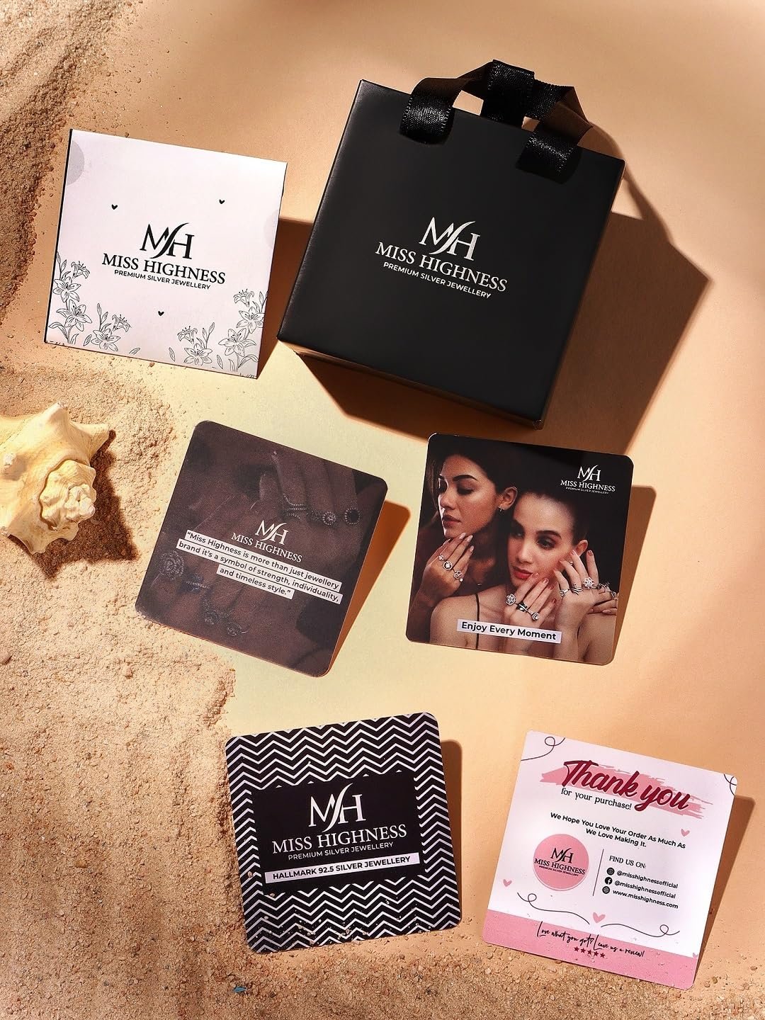 - SILVER RING PACKAGING & CARE – Comes in an elegant Miss Highness jewellery box with a soft cloth. Wipe gently, store separately, and avoid perfumes or water to maintain shine.