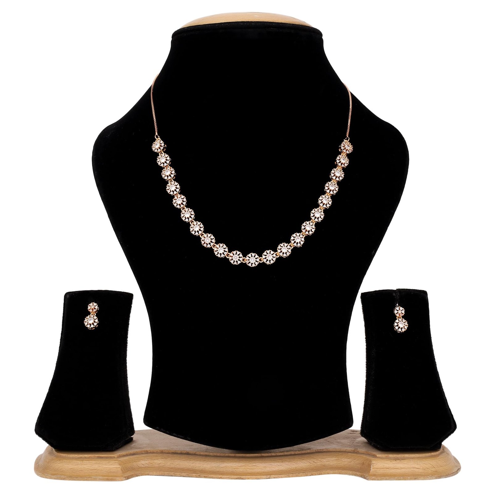 Elegant Rose Gold Plated Jewellery Set for Women Add a touch of timeless elegance to your ensemble with this stunning rose gold plated jewellery set, beautifully adorned with premium American Diamond stones. Designed for modern women who love a blend of tradition and glamour.