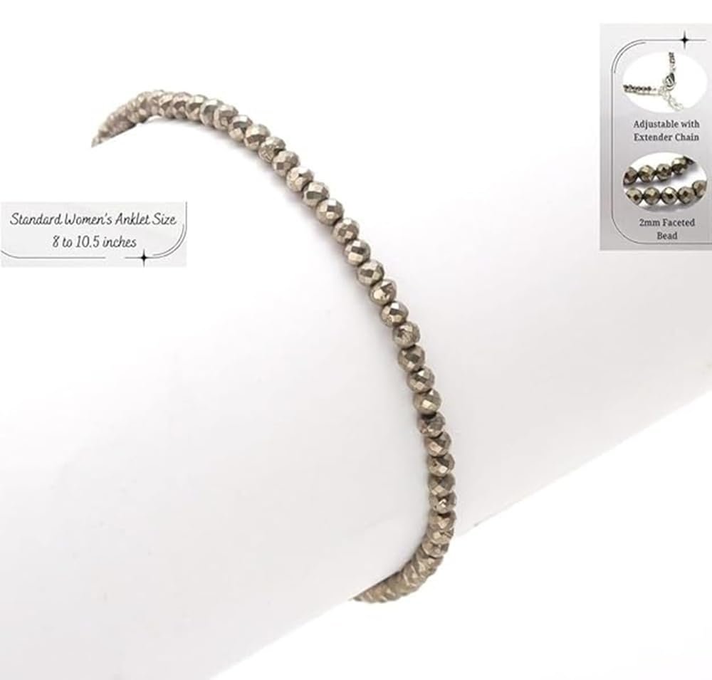 • Certified 1 Pair of Raw Pyrite Anklet for Women – Made with natural 2mm raw pyrite beads, this stylish stone anklet is certified for authenticity, ensuring you receive genuine healing crystal jewelry