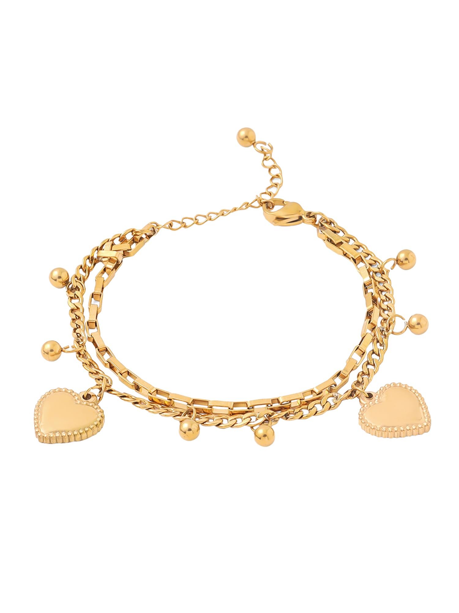 Be the first to review “Qiroko Power Edit Collection | Stainless Steel Adjustable Multi-Layer Heart Charm Stack Bracelet For Women And Girls | Gold Colour | Anniversary Birthday Gifts”