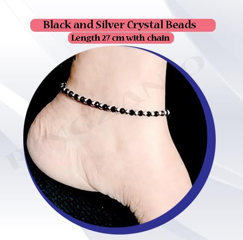 • Stylish Nazariya Anklet: Crafted with black and silver crystal beads, this Nazariya anklet offers a chic and modern look, perfect for daily wear anklets