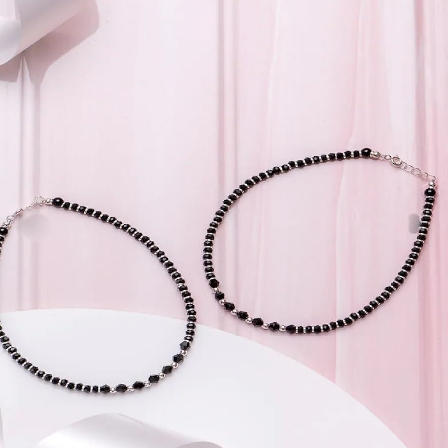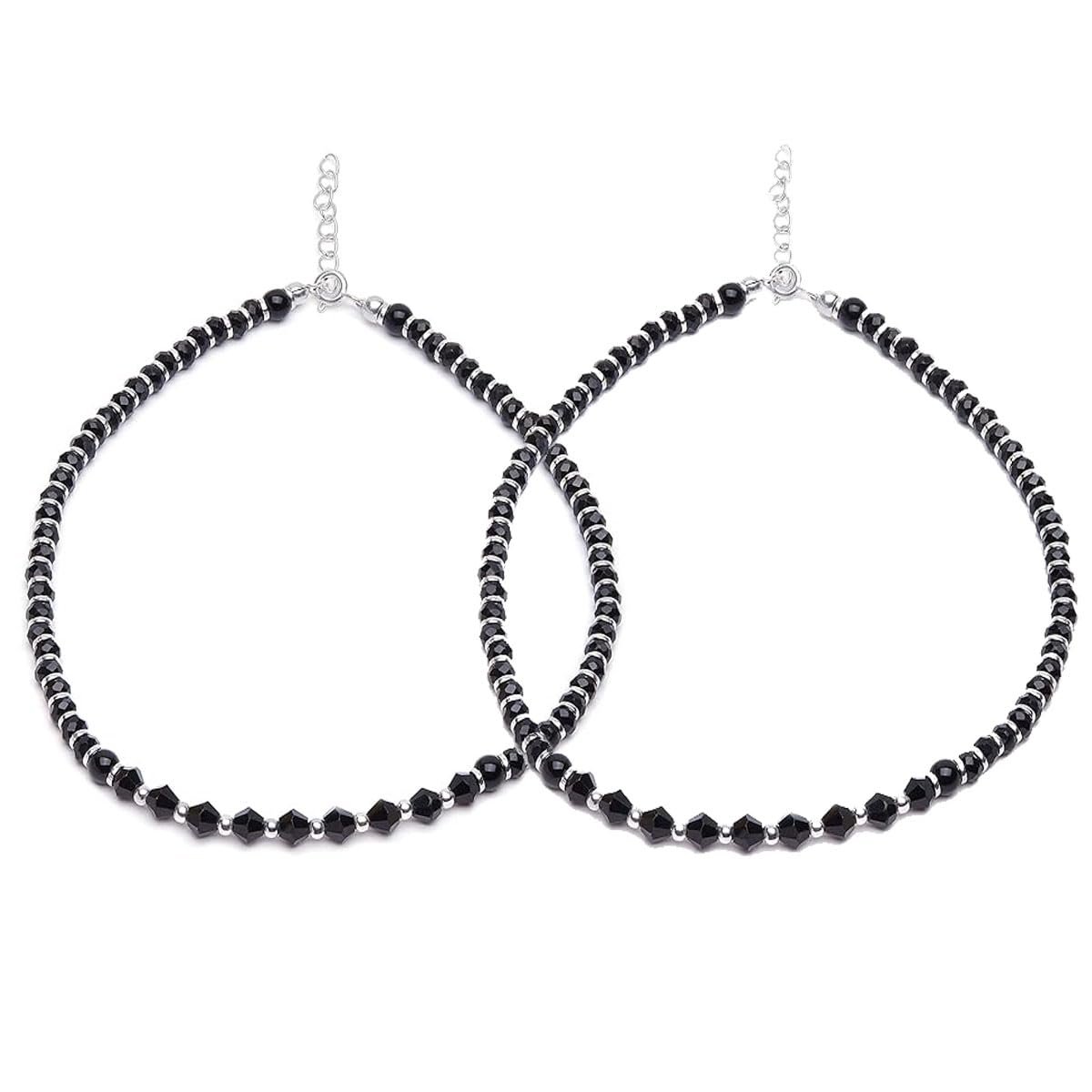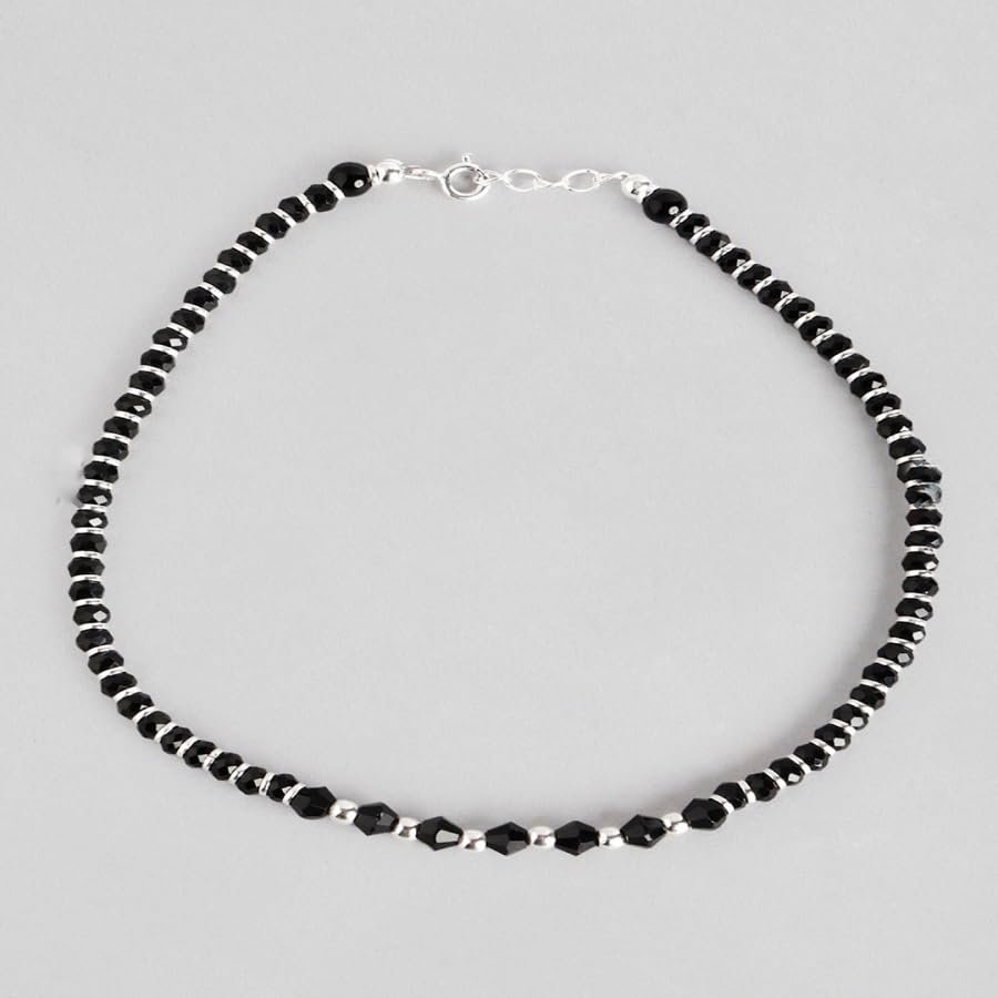 • Silver and Black Small Balls Anklet For Women and Girls.