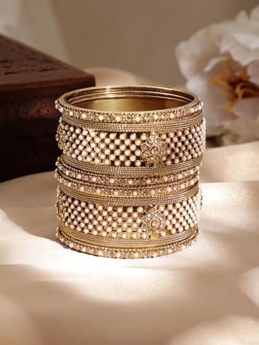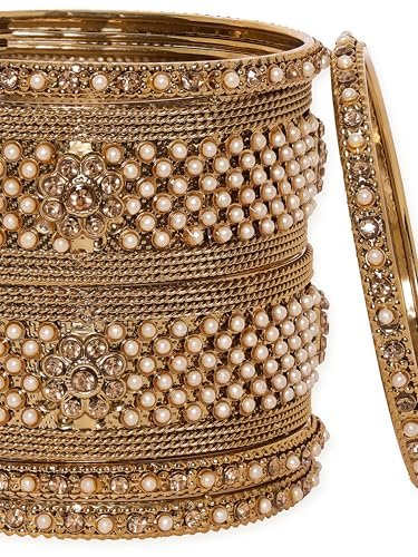- Classic Beauty with a Modern Twist: This set of six bangles features beautiful antique-style pearl beads, offering a touch of timeless sophistication to your look. The strung design adds a modern twist, making them perfect for the contemporary woman who appreciates a bit of vintage charm.