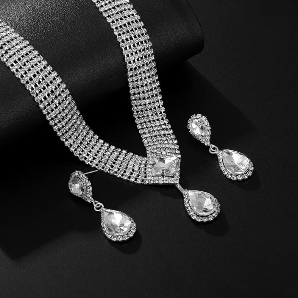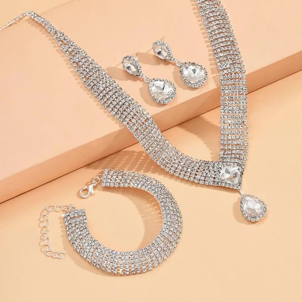 • This Jewellery Set contains Premium Quality Silver Plated Crystal Diamonds Necklace with one pair of Earrings and bracelet for women and girls. Perfect Party Jewellery Set with Sparking Crystal Diamonds. Latest and Stylish Design.
