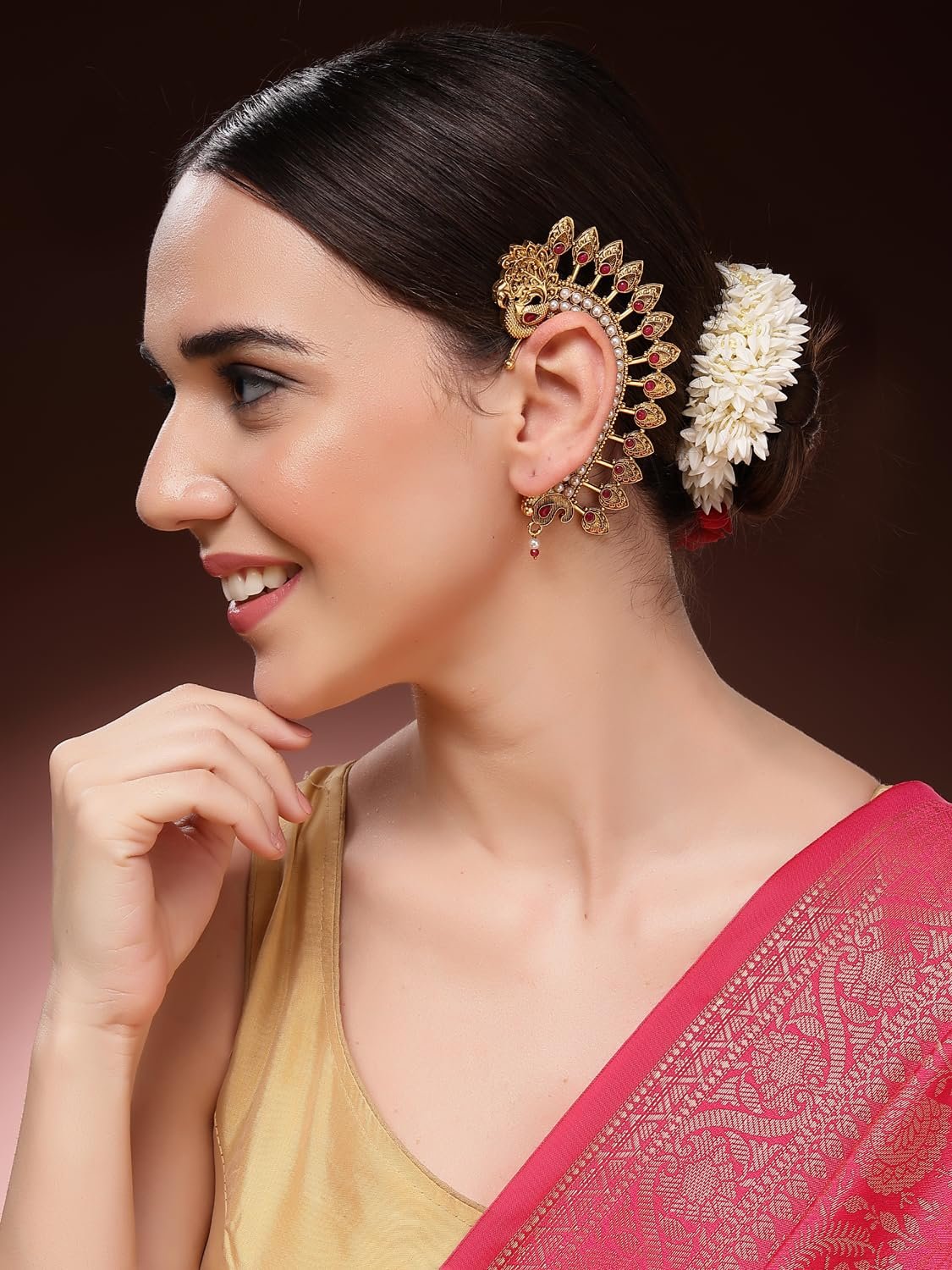 - Gold Plated Pearl Traditional Ear Cuff Earrings