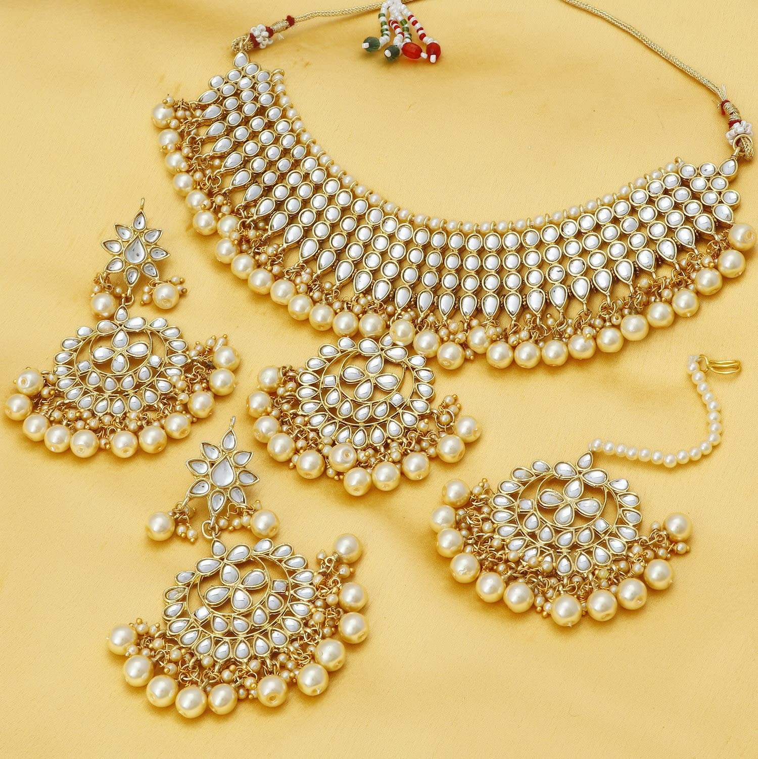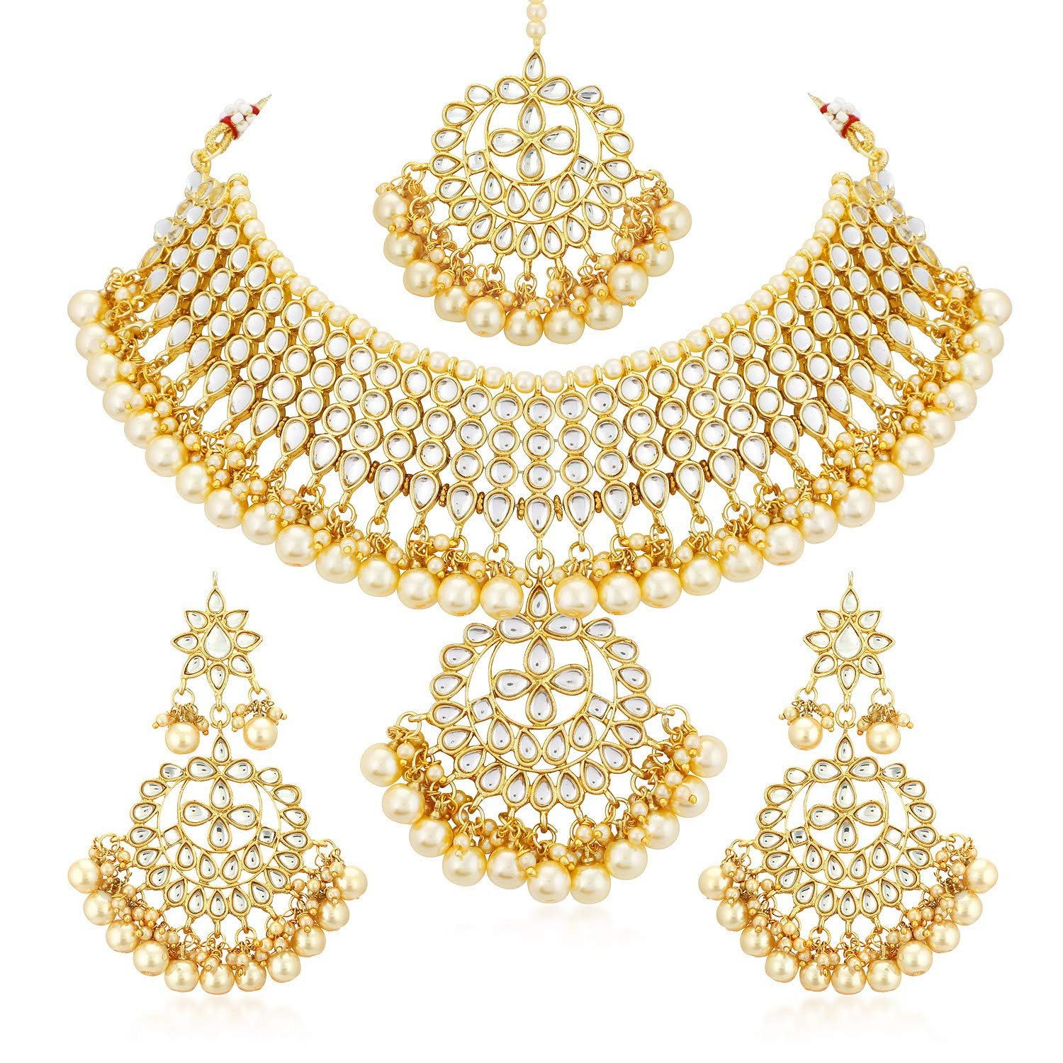 - Traditional Kundan & Pearl Gold Plated Choker Necklace Set for Women will complement any Indian attire. Women Love Jewelry as it not only enhances their beauty, but also gives them the social confidence. Make your moment memorable with this range. This jewel set features a unique one of a kind traditional embellish with antic finish. Earrings are very easy to use being lightweight and has a design which makes it very comfortable.
