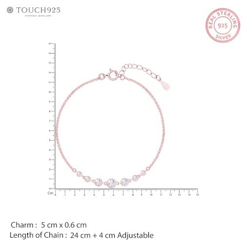 • Crafted from TOUCH925 Pure 925 Silver, this rose-gold anklet features brilliant Cubic Zirconia stones arranged in a radiant line, adding modern sparkle to every outfit and occasion.