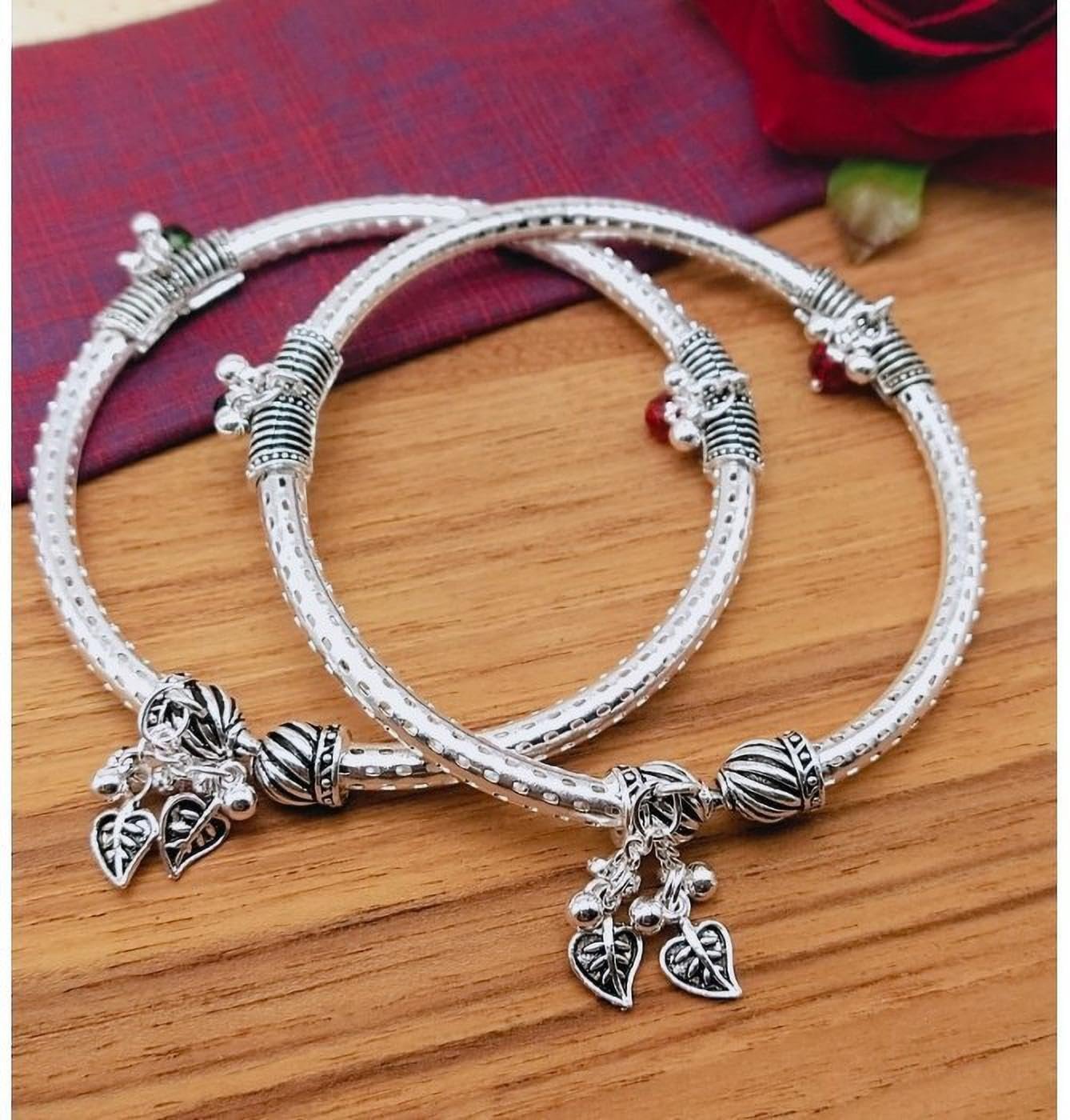 Enhance your traditional look with these beautiful White Plated Traditional Anklets Payal. These anklets are ideal for women and girls who love vintage and ethnic style. These White plating gives them an antique and oxidized look, which adds a touch of elegance to any outfit. The anklets feature a large size, making them perfect for women of all ages. They are also great for gifting to loved ones on special occasions.The White payal looks like real White, but is much more affordable and durable. The anklets are designed to withstand daily wear and tear, and will last for years to comeWhite Plated Anklets Payal are perfect for traditional events such as weddings, engagements, and religious ceremonies. They are also great for casual wear, adding a touch of elegance to any outfit. These stylish and oxidized anklets are a must-have for every woman’s jewellery collection. The traditional design of these anklets is a classic addition to any outfit, and their stylish and oxidized look makes them perfect for any occasion. The artificial anklets are made to look like real White, and their durability ensures that they can be worn every day without losing their shine.