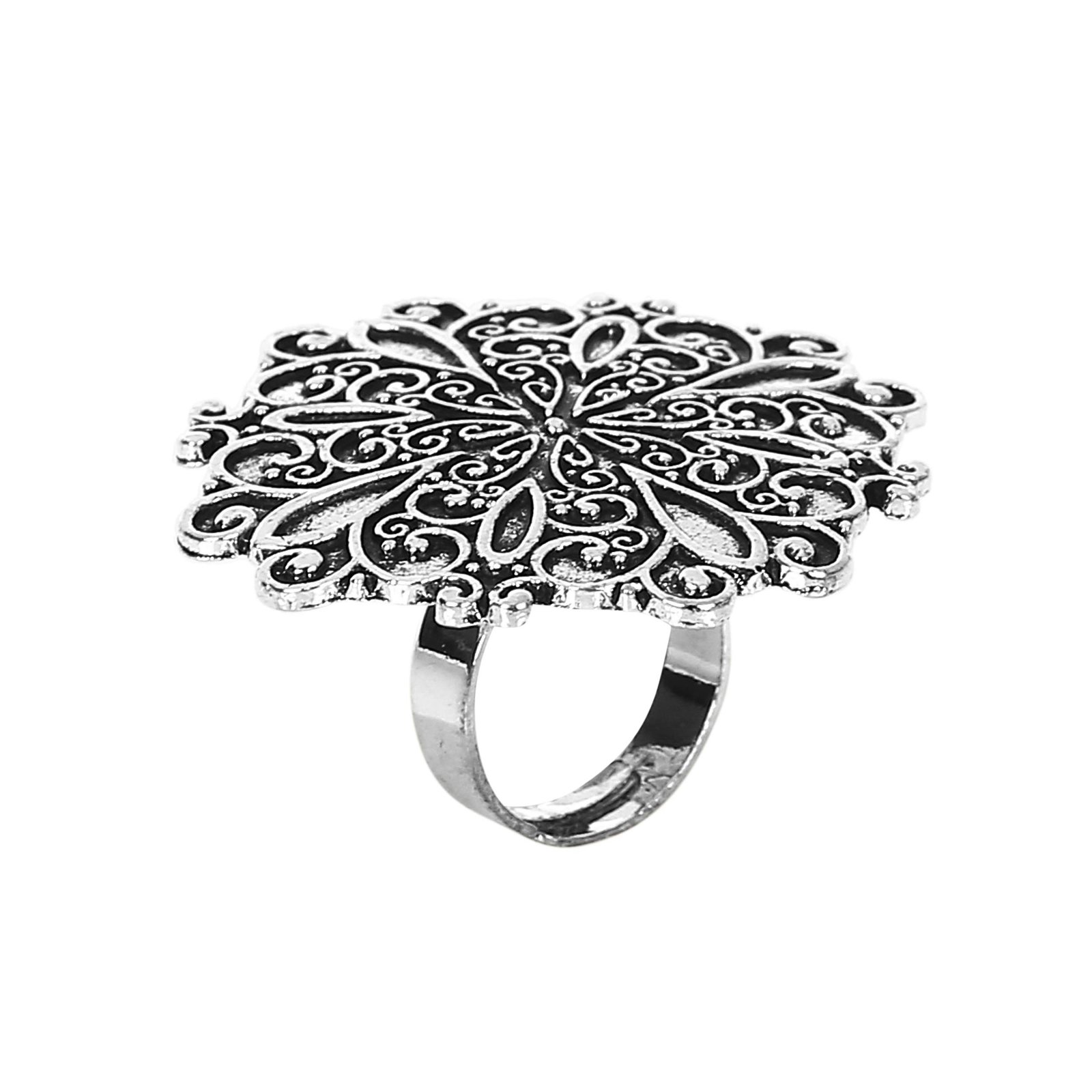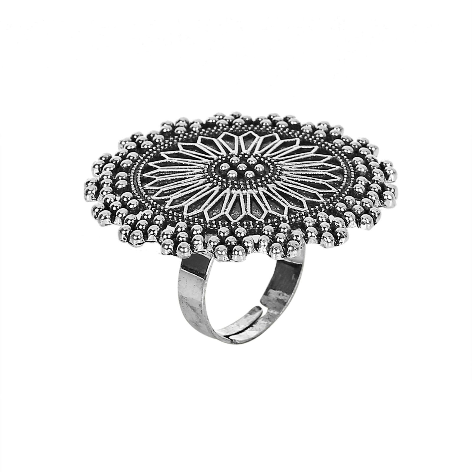 YouBella Oxidized Silver Plated Afghani Rings for Women and Girls (Adjustable Size, Combo of 3, Style 3)