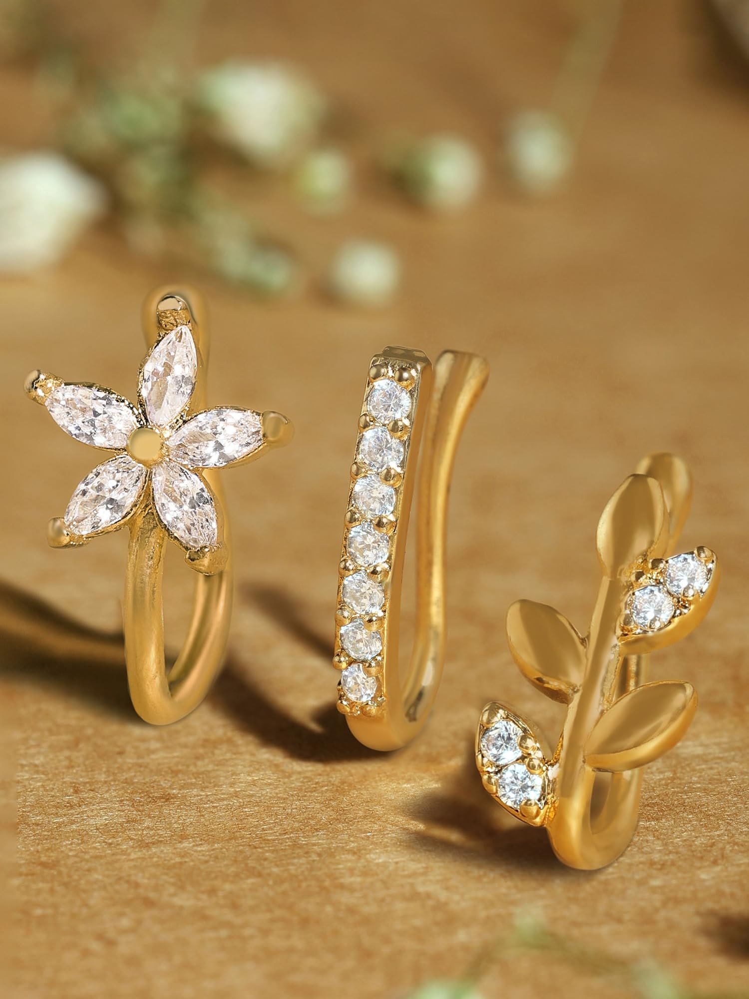 Be the first to review “ZAVERI PEARLS Set of 3 Gold Tone Cubic Zirconia Contemporary Brass Clip On Nose Pins For Women-ZPFK17365”