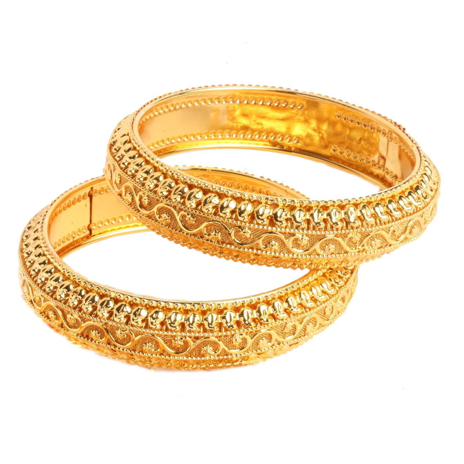 - What You Get:- Set Of 2 Oxidised Plated Classic Intricate Textured Bangles, secured with Slip-On closure.