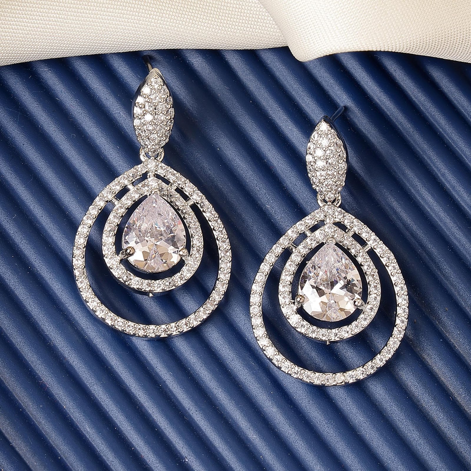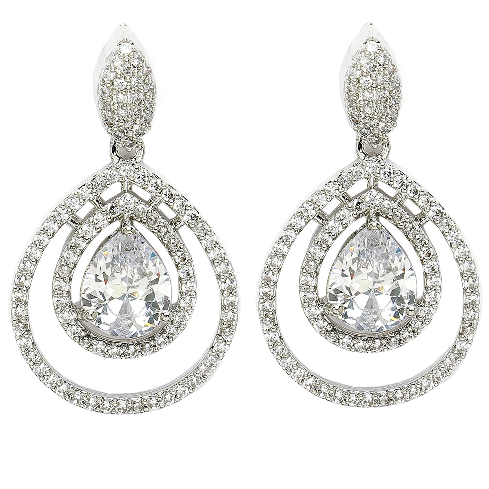 - Components: 1 Pair of Silver-Plated Latest Fashion American Diamond Dual Tear Crystal Latest Earrings . The earrings come in a cute Zeneme jewellery box along with a card for jewellery care .