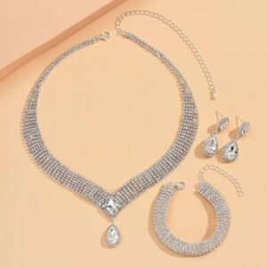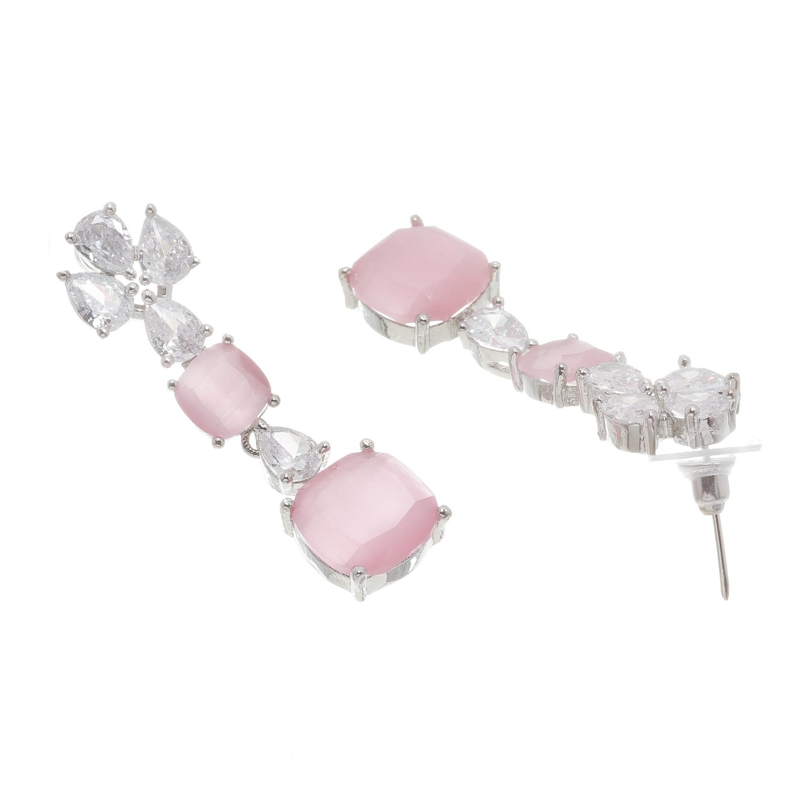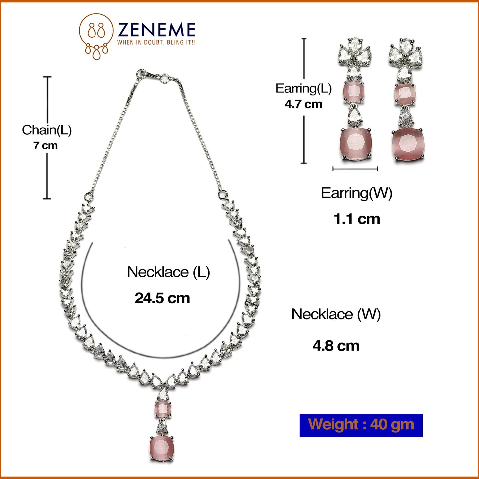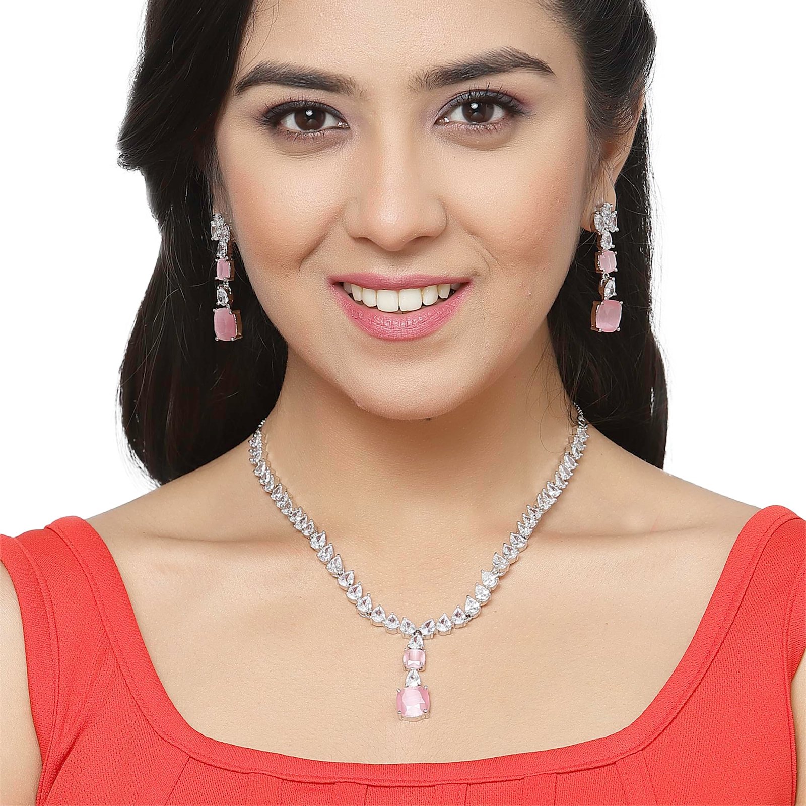 - What You Get:- 1N Rhodium-Plated Square American Diamonds Studded Pendulous Necklace With 2N (1 Pair) Earrings Jewellery Set.