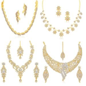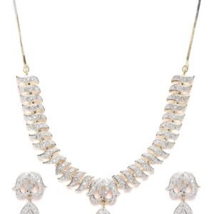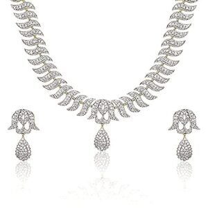 ZENEME presents this latest Rhodium-Plated jewellery set stylish necklace set for women. This casual or wedding party wear rhodium plated necklace set for women is made of fine quality material which looks stylish and goes perfect with any attire. This traditional necklace set for women is perfectly suited for wedding or party wear. ZENEME is a well known brand across fashion jewellery sector. ZENEME has huge collection of latest statement haram necklace jewellery, traditional necklace set, south indian type Lakshmi temple pendant set and other jewellery accessories which includes fancy bangles for women, wedding bangles, ear cuffs, traditional bangles kada, neck choker, fashion party wear necklace for girls and jhumki jhumka earrings. ZENEME is pioneer of imitation jewellery and design pearl necklace set for women and american diamond hangings party wear stylish earrings. ZENEME fashion and traditional jewellery give true value for your money. buy ZENEME trendy artificial jewellery from amazon in offer. these are also ideal for special birthday gifts for girls, wife, love valentine gifts for girlfriend, wedding gifts and anniversary gifts.