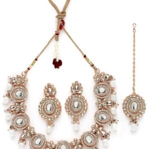 Brand: Sukkhi Color: Gold Features: What’s In The Box : 1 Necklace, 1 Pair of Earring & 1 Maangtika Traditional Design: This Sukkhi jewellery set embodies traditional aesthetics with ...