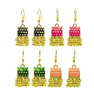 KUBERA IMITATION JEWELLERY Combo Set Meenakari Earrings Women & Girls Golden Small Jhumki Traditional Drop Hoop Multi Color Ear Rings Wedding Birthday pearl gifts -SJ50