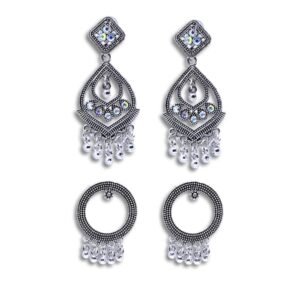 Kubera Imitation Jewellery Oxidised Earrings Set for Women Combo Jhumka Hanging Silver Traditional Jhumkis For Girls Stylish Small Stud Ear Rings -SOJ43