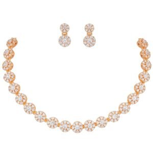 Nilu’s Collection Rose Gold Plated | American Diamond Stone Studded | Anti Tarnish Jewellery Set for Women and Girls | Matching Earrings | Perfect for Weddings and Special Occasions (Style 4)
